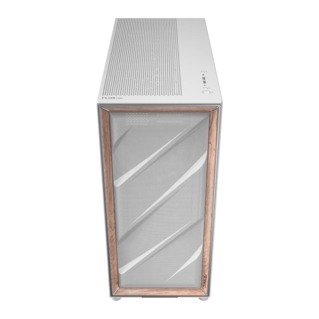 Aesthetically striking, the FLUX PRO combines functionality with style by integrating a premium walnut wood finish on the front panel, creating a refined and modern look that complements any gaming setup. The front mesh design allows for unrestricted airflow, while the top and bottom vents work together to establish a smooth and efficient cooling system. With extensive radiator support, accommodating up to 420mm radiators on both the top and front, this case is ideal for enthusiasts looking to incorporate advanced liquid cooling solutions.
