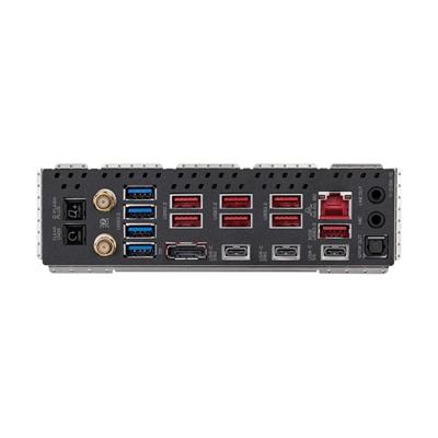 | Back Panel I/O | 1 x Q-Flash Plus button 1 x Clear CMOS button 2 x SMA antenna connectors (2T2R) 1 x DisplayPort 1 x USB Type-C® port, with USB 3.2 Gen 1 support 2 x USB Type-C® ports, with USB 3.2 Gen 2×2 support 7 x USB 3.2 Gen 2 Type-A ports (red) 4 x USB 3.2 Gen 1 ports 1 x RJ-45 port 1 x optical S/PDIF Out connector 2 x audio jacks |